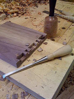 I will admit, the table top has been the cut in the learning curve for hand planing. That and a little potty-time refresher in The Schwarz's Course, Medium, Fine. I was able to dimension, flatten and smooth all the pieces in a weekend. Learning when an iron needs to be honed and the practiced skill of quick and accurate sharpening has also been a godsend. Another tidbit I found on the web suggested ganging multiple dovetail pieces together. Believe it or not they are much tighter and in half the time!